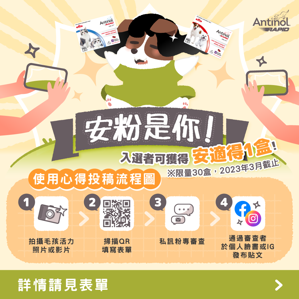 歡迎投稿您家毛小孩的安適得使用經驗!