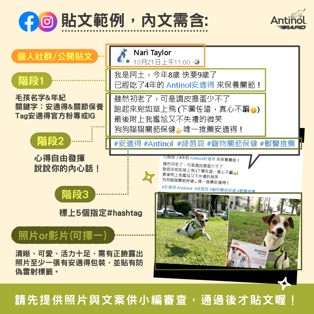 2. 每人/每寵物限投稿一次,以名字、社群帳號及手機號碼合併判定。